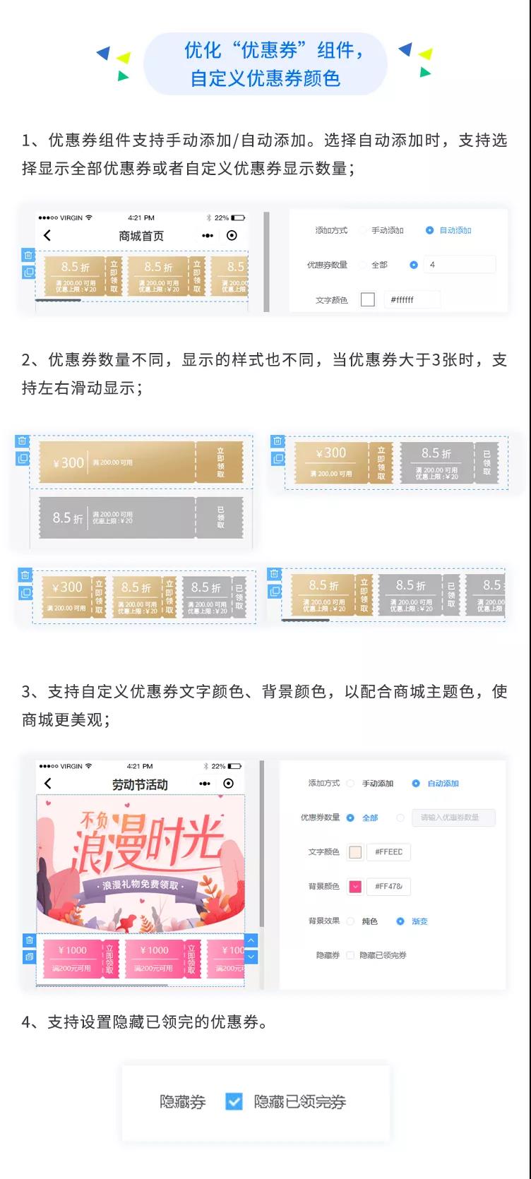 本次更新所有版本均可使用,重点产品 五合一电商独立部署版本有优惠券 付款一元即可获赠800元优惠券! 扫码领优惠券